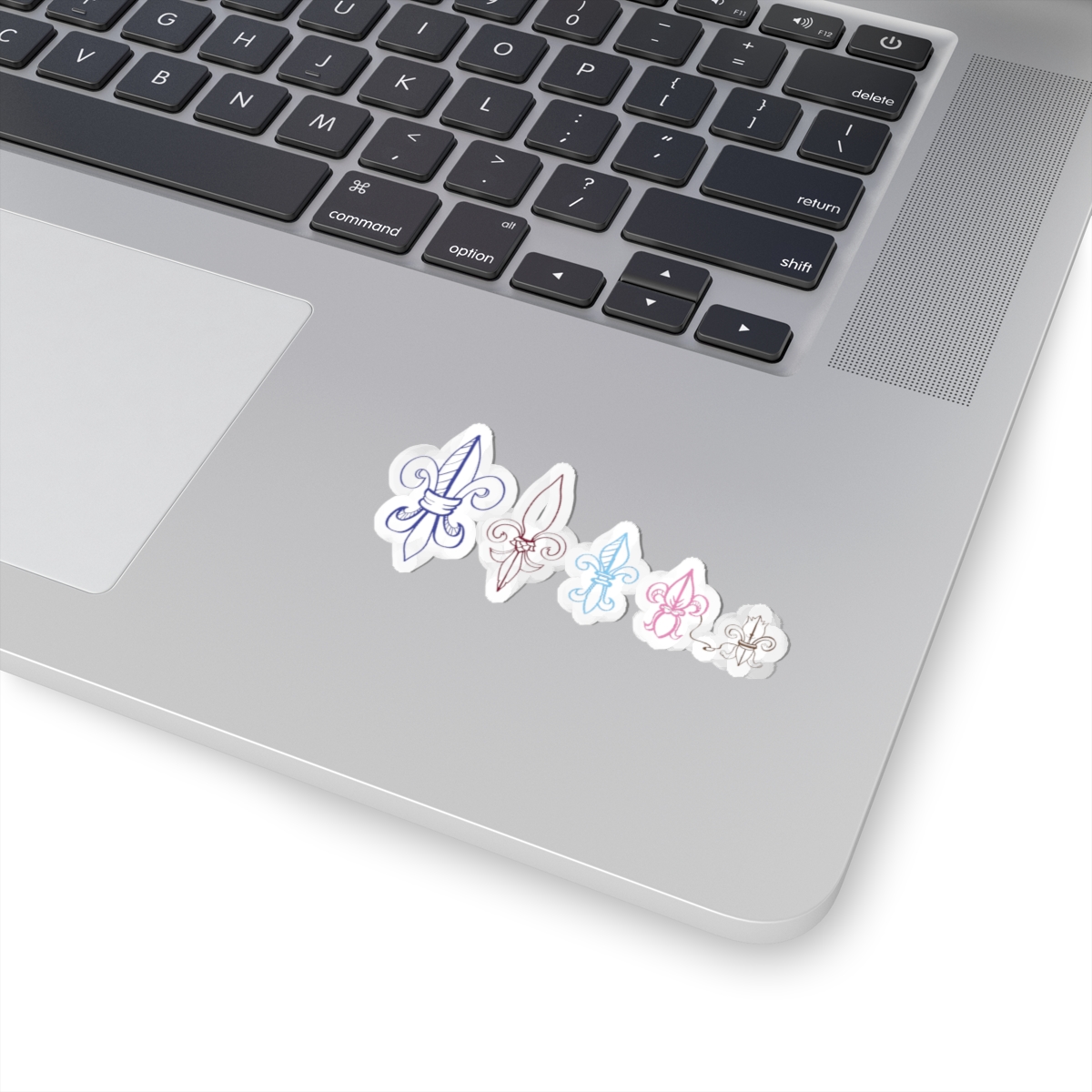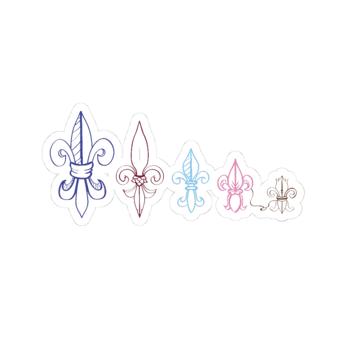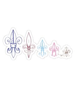 A set of kiss-cut vinyl stickers featuring five delicate fleur-de-lis designs in soft, watercolor-like tones. Each sticker has a glossy, scratch-resistant finish that makes the subtle color shifts pop on smooth surfaces like laptops, journals, and phone cases. The compact set blends classical motifs with a modern, pastel palette — small enough to layer or scatter across your favorite gear for a quiet, elegant touch. Application is quick and bubble-free, and the permanent adhesive keeps them in place on indoor décor where they add a gentle, handcrafted feel.